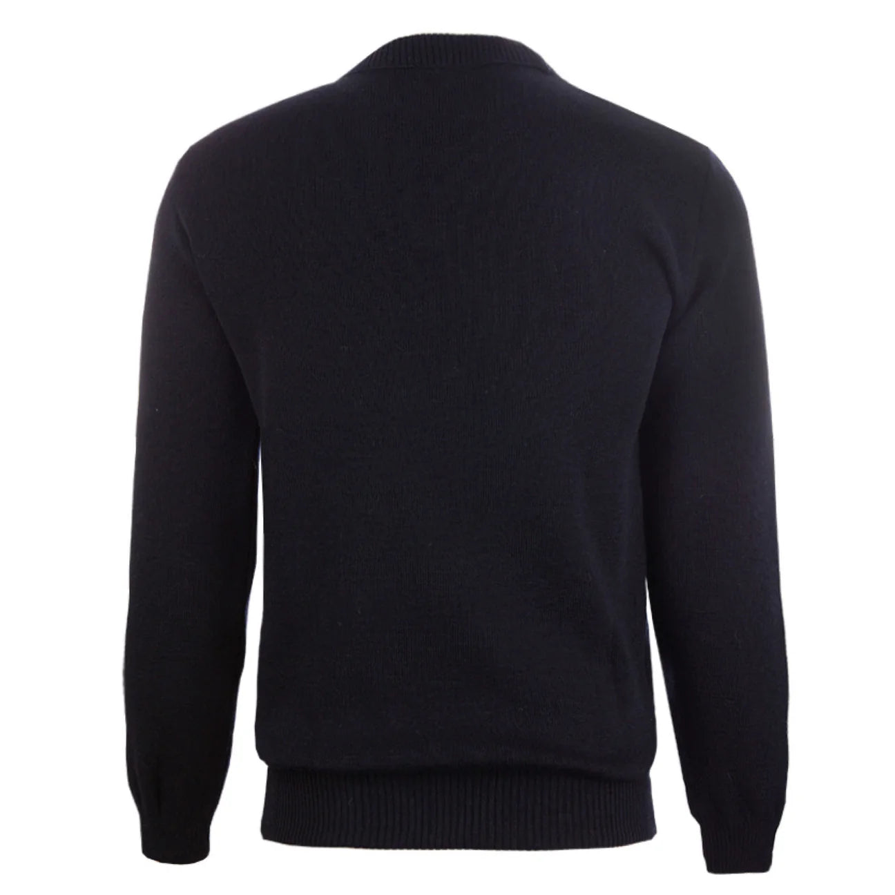 Deze 100% wollen trui is niet alleen heerlijk warm, maar ook ademend en waterafstotend. Wol houdt warmte vast als het koud is, maar ademt wanneer het warm wordt — perfect voor wisselende Nederlandse omstandigheden.